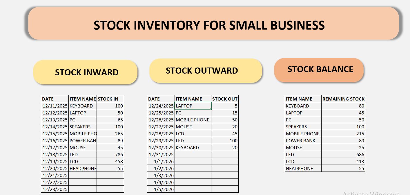 I have designed this template, which is completely free and easy to use. You simply need to enter your stock inward and outward entries, and the remaining balance will be shown automatically. You can use this template in both Microsoft Excel and Google Sheets.
